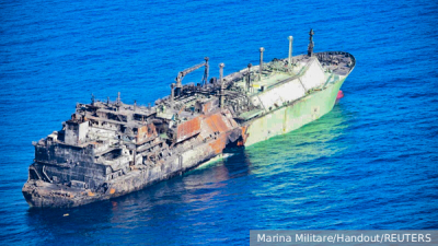 @ Marina Militare/Handout/REUTERS Российский газовоз «Арктик Метагаз» подвергся атаке украинским морским беспилотником, соо ...