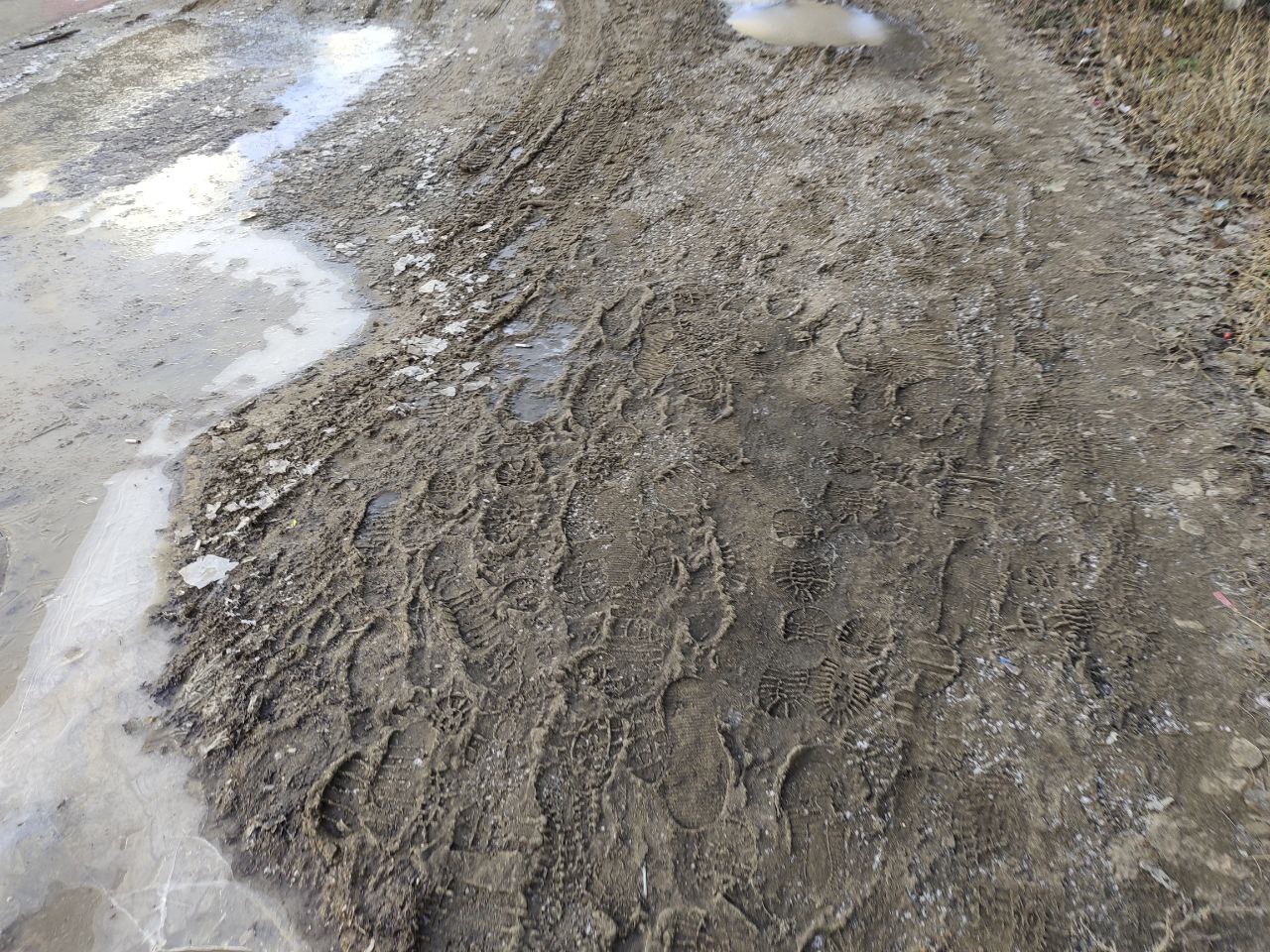 На кадрах, которые она отправила, видно, как возле одного из домов скопились большие лужи, а тропинку размыло в грязевое месиво.