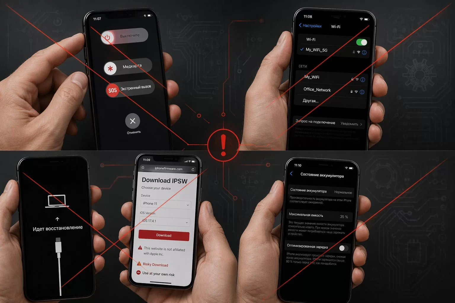 2. Попытки перепрошить устройство «вручную» через iTunes или Finder до того, как система сама не выдаст ошибку. Вместо того чтобы просто подождать, люди начинают скачивать ipsw-файлы с сомнительных сайтов и запускать восстановление, хотя часто достаточно было дать телефону ещё 20 минут спокойной работы.