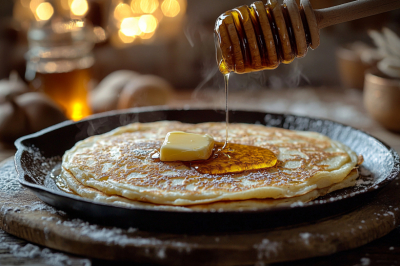 По текстуре эти блинчики находятся ровно посередине между тонкой классикой и пышными оладушками. При этом внутри они нежные, влажные, с х ...