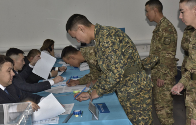 Фото: РгК «Шығыс» Сотрудники Нацгвардии РК и солдаты воинской части 5518 рано утром пришли, чтоб отдать свои голоса за на референдум ...