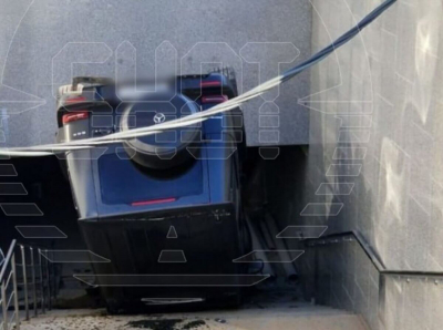 Внедорожник слетел в подземный пешеходный переход и перевернулся