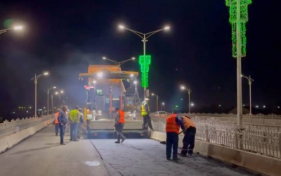Сегодня ночью рабочие приступили к укладке нижнего слоя асфальтобетонного покрытия на мосту через Илек. Ремонтирует мост компания «Ассана Дор ...
