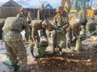 Фото: Пресс-служба Национальной гвардии РК Военнослужащие Нацгвардии усиленно бьются со стихией в противопаводковых мероприяти ...