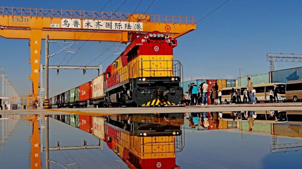 В 2023 году объём импорта и экспорта Синьцзяна составил 357,33 млрд юаней, увеличившись на 45,9%. Среди них объём импорта и экспорта между Синьцзяном и странами-участницами инициативы «Одного пояса и одного пути» увеличился на 47,8% что составляет 94% объёма торговли Синьцзяна, а объём импорта и экспорта между Синьцзяном и странами Центральной Азии увеличился на 53%, что составляет более 80% объёма торговли Синьцзяна. Проходит через территорию Синьцзяна более 14397 поездов Китай-Европа (Центральная Азия), которые занимали более половины доли по всей стране, достигнув прироста на 8,5% в годовом исчислении. А количество поездов Китай-Европа отправленные из Синьцзяна превысило 1518, и их количество достигло 5,4% в годовом исчислении.
