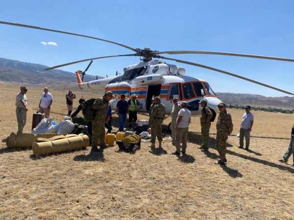 Совместно с АО «Казавиаспас» выполнены авиационные операции по заброске специализированных бригад с оборудованием, рекогносцировочных групп для батиметрических измерений, наблюдателей для организации круглосуточного мониторинга на 23 высокогорных участках.